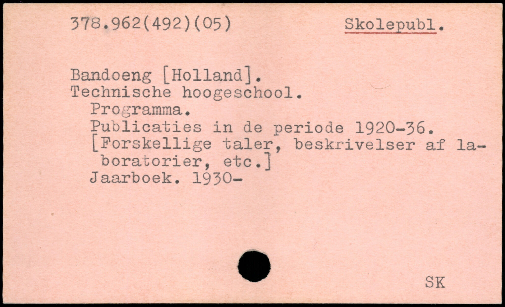 Bandoeng [Holland]. Technische hoogeschool. Programma. Publicaties in de periode 1920-36. [Forskellige taler, beskrivelser af laboratorier, etc.] Jaarboek. 1930-