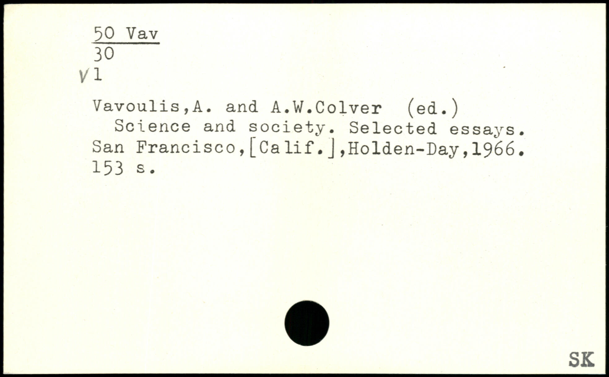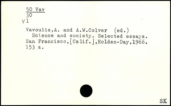 Science and society. Selected essays. San Francisco,[Calif.J,Holden-Day,1966.