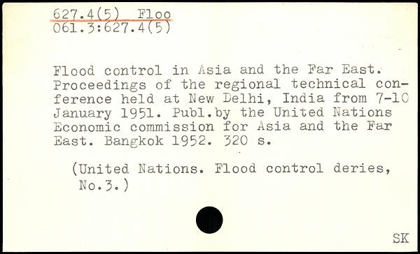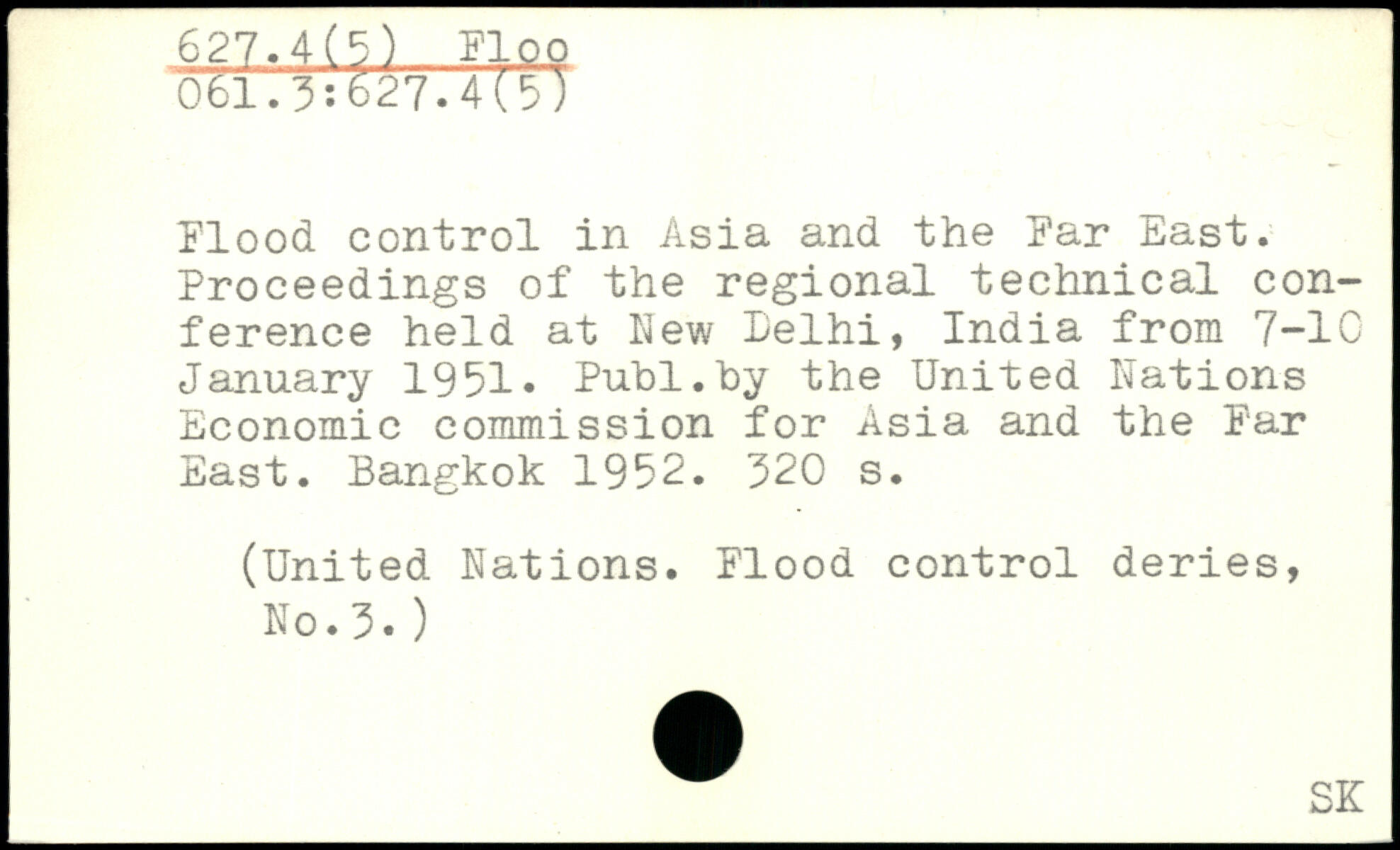 Flood control in Asia and the Far East. Proceedings of the regional technical conference held at hew Delhi, India from 7-10 January 1951