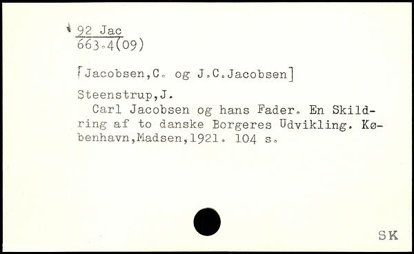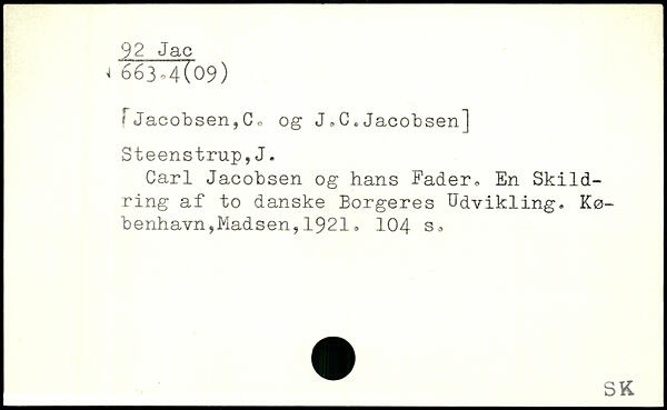f" Jacobsen, C 0 og J,C.Jacobsen] Steenstrup,J. Carl Jacobsen og hans Fader, En Skildring af to danske Borgeres Udvikling.