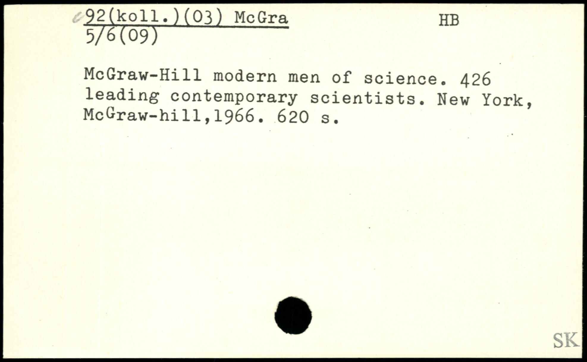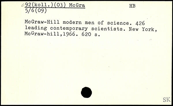McGraw-Hill modern men of science. 426 leading contemporary scientists.