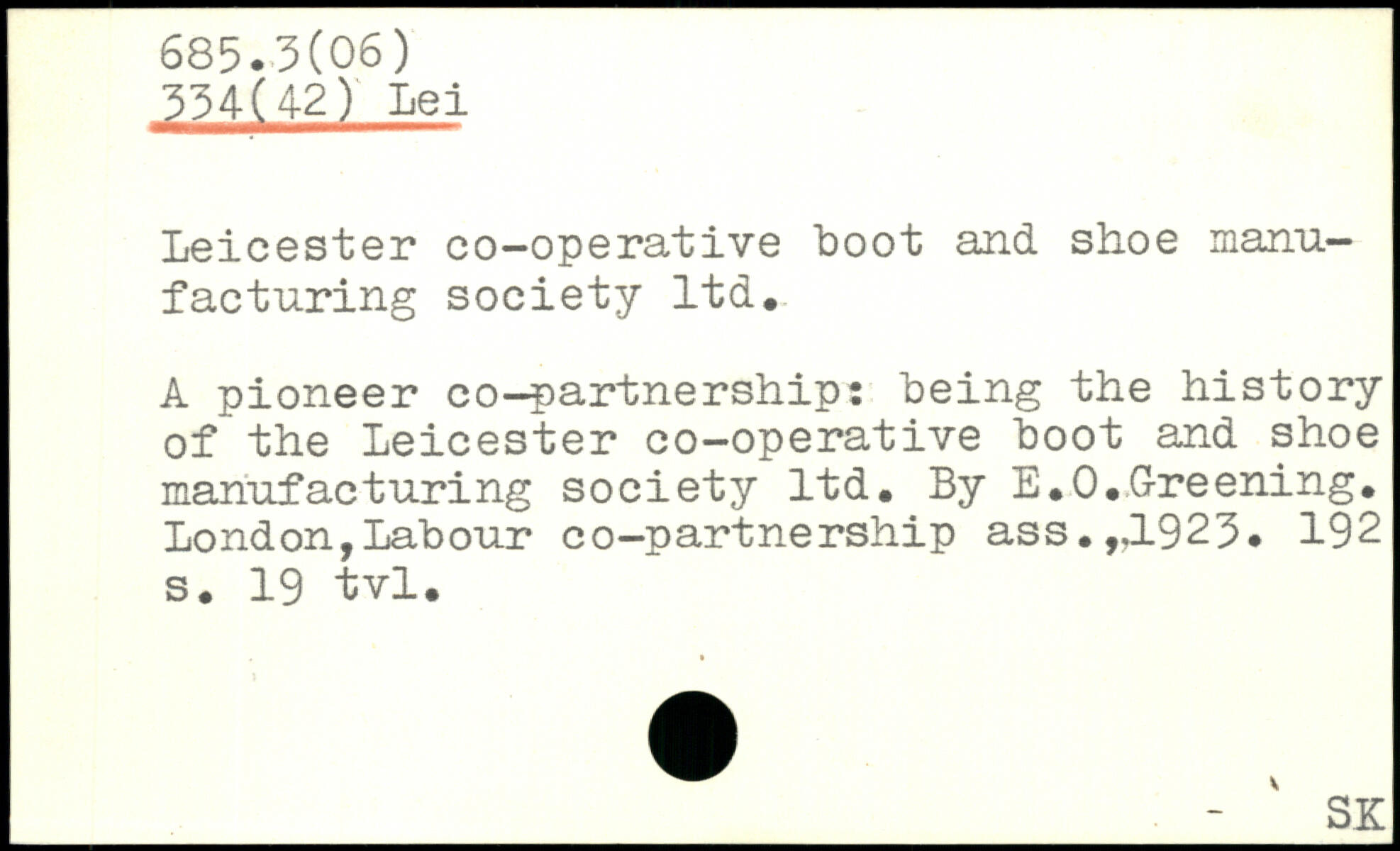 Leicester co-operative boot and shoe manufacturing society ltd. A pioneer co-partnership: being the history of the Leicester co-operative boot and shoe manufacturing society ltd. By E.O.Greening.