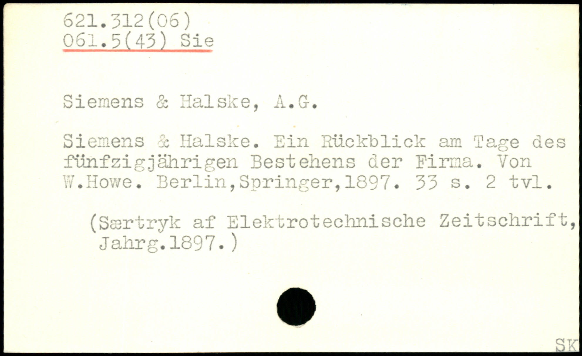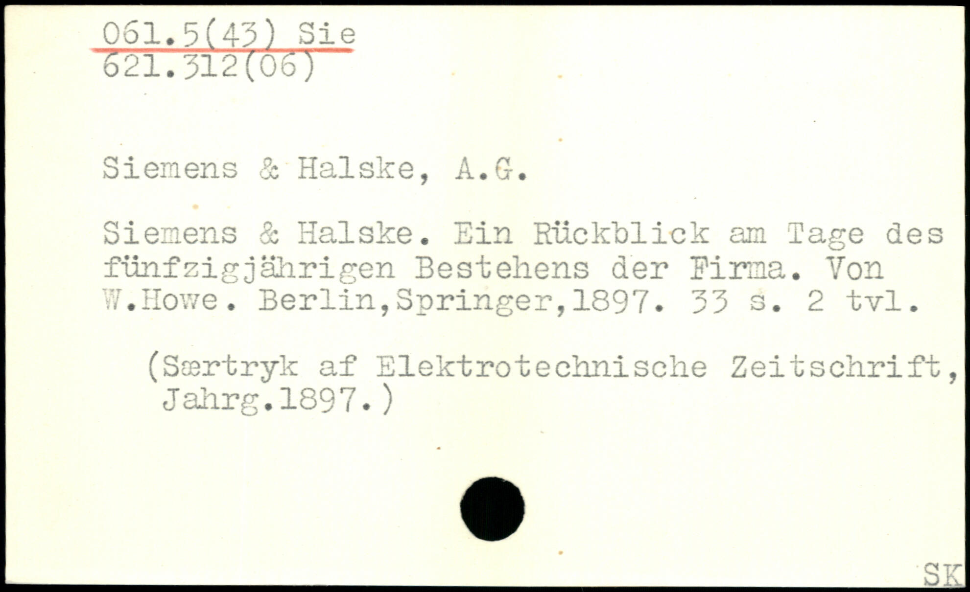 Siemens 1 Ilalske. Ein Rückblick am Tage des fünfzigjährigen Bestehens der Firma. Von W.Howe.