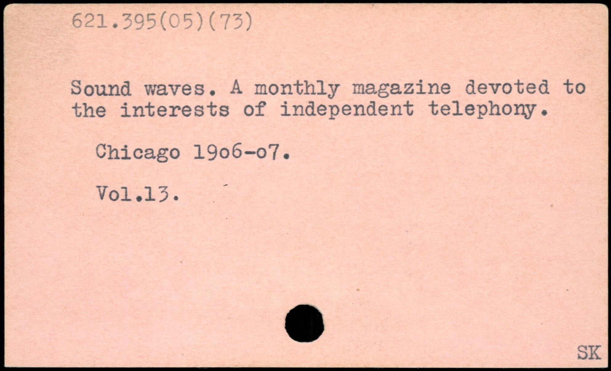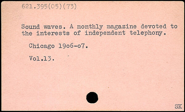 Sound waves. A monthly magazine devoted to the interests of independent telephony. Chicago 19o6-o7.
