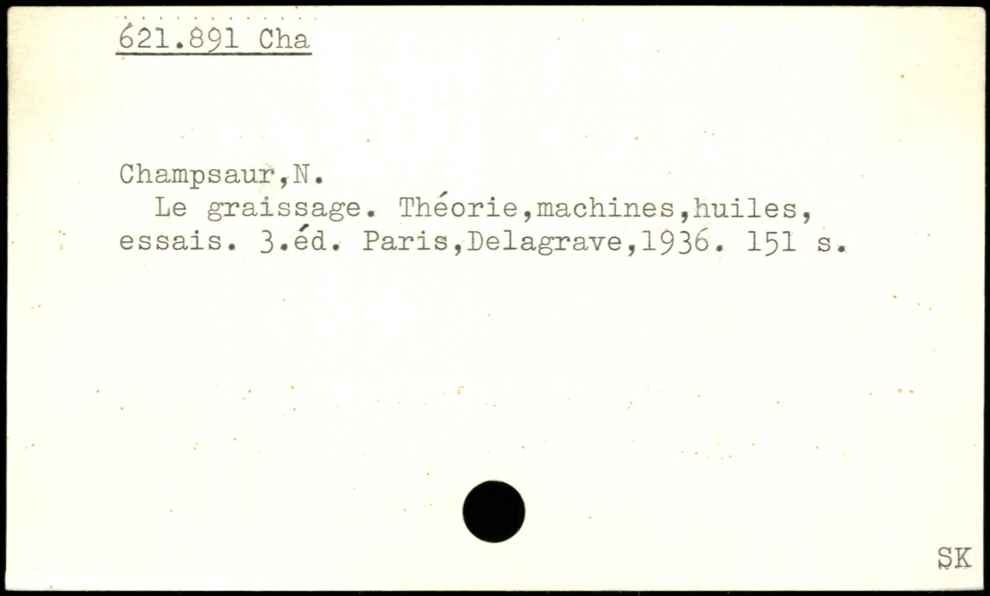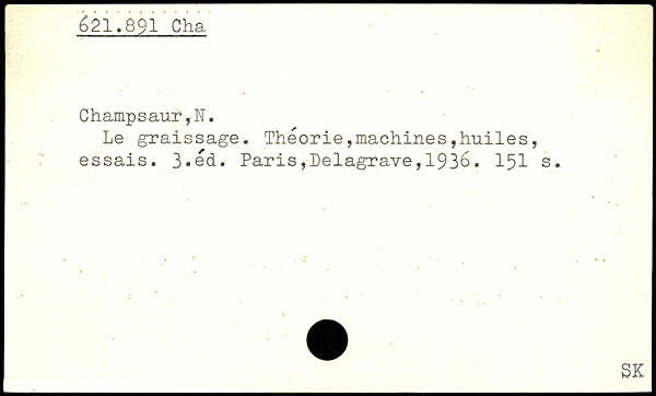 Le graissage. Théorie,machines,huiles, essais. 3.éd. Paris,I>elagrave, 1936.
