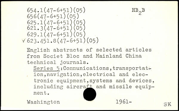 English abstracts of selected articles from Societ Bloc and Mainland China technical journals. Series 5:Communications,transportation,navigation,electrical and electronic equipment,systems and devices, including aircra^and missile equipment.