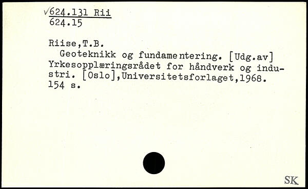 Geoteknikk og fundamentering. [Udg.av] Yrkesopplæringsrådet for håndverk og industri. [Oslo],Universitetsforlaget,1968.