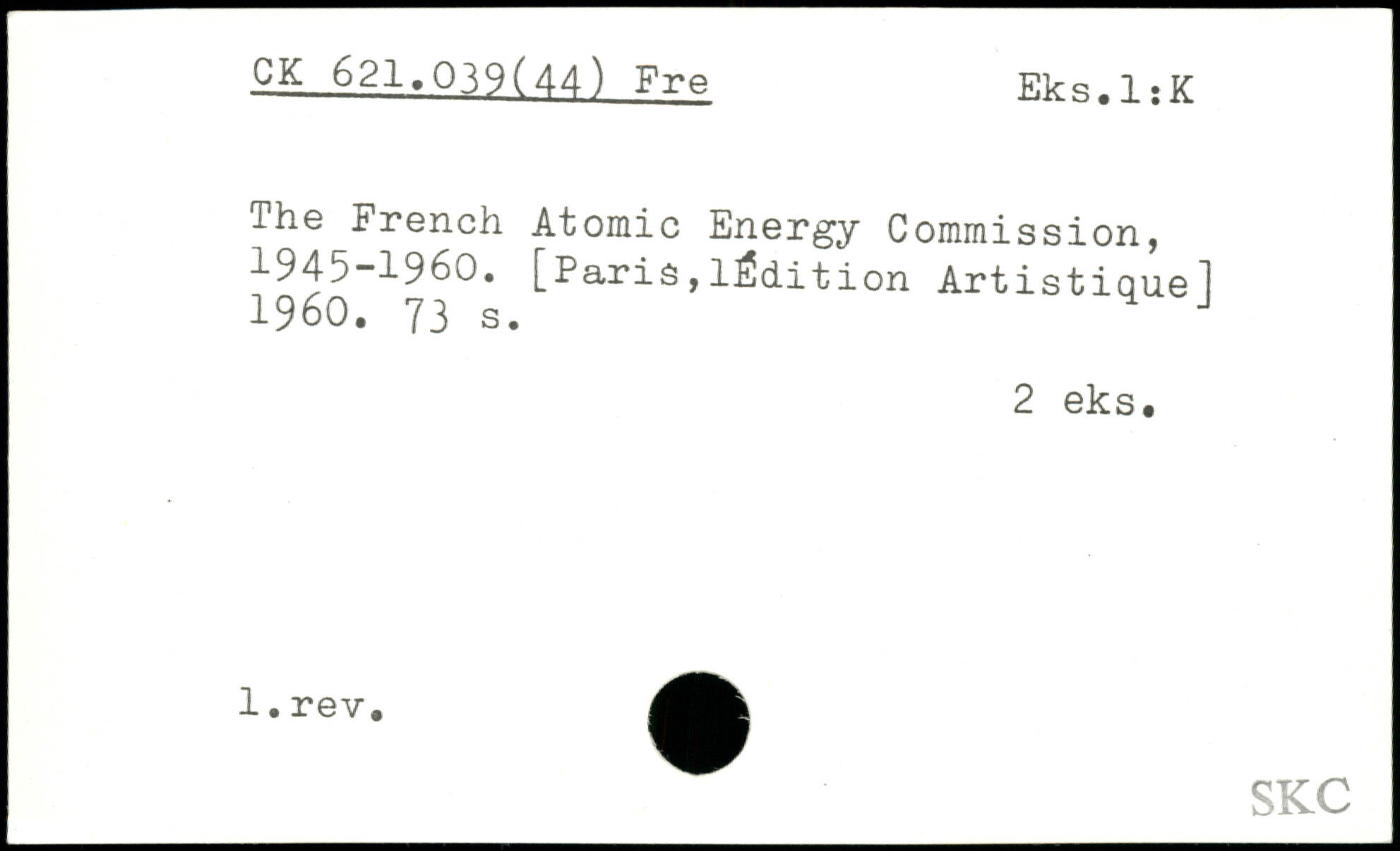 The French Atomic Energy Commission, 1945_1960. [Paris,LÉ dition Artistique] 1960.