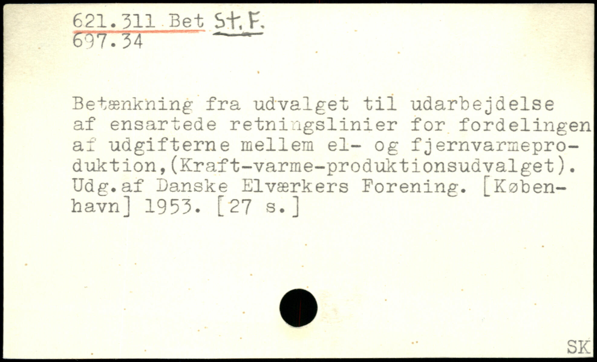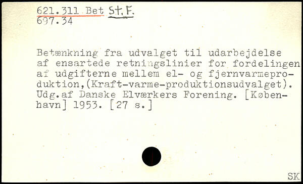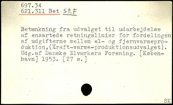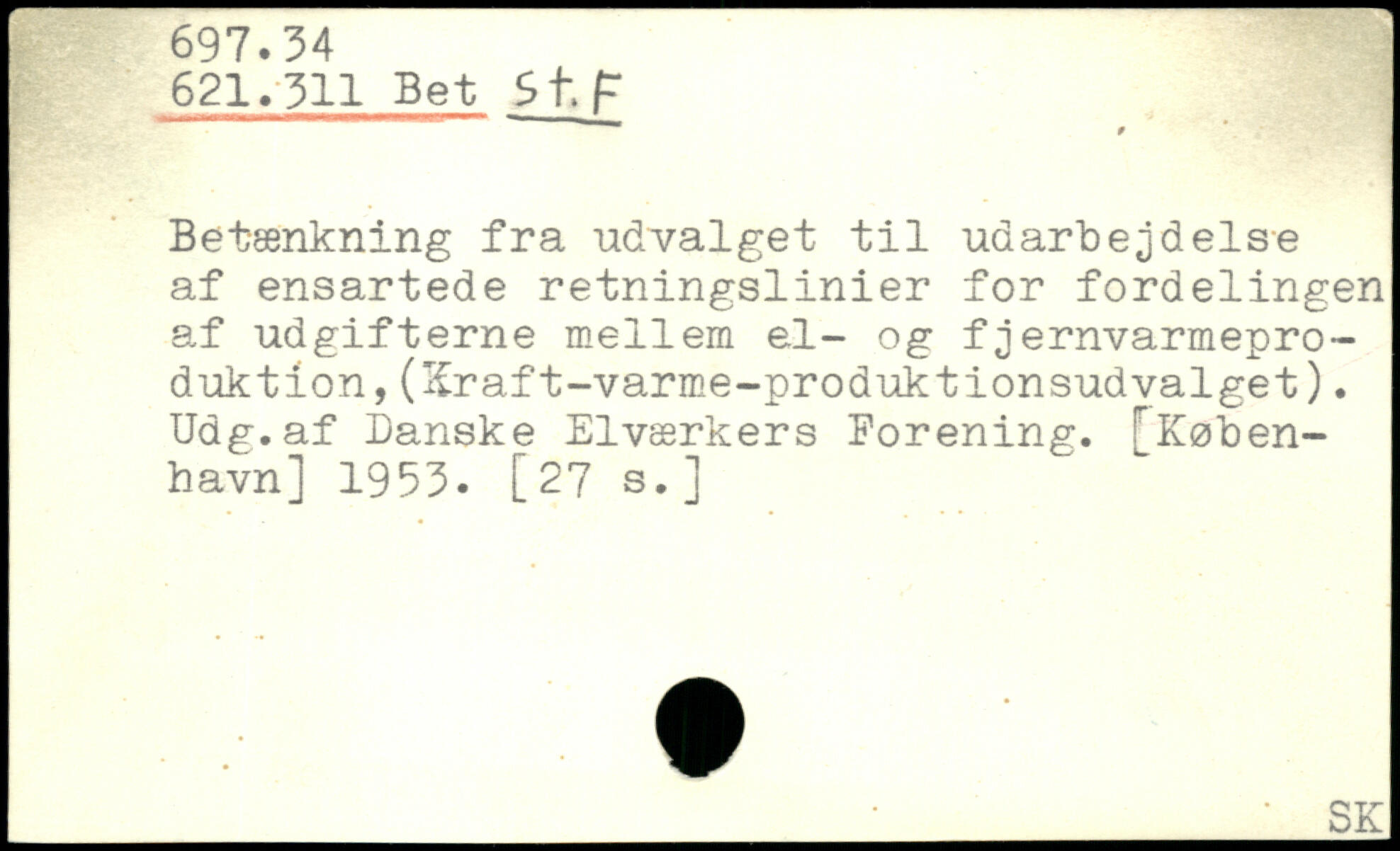 Betænkning fra udvalget til udarbejdelse af ensartede retningslinier for fordelingen af udgifterne mellem el- og fjernvarmeproduktion, (Kraft-varme-produktionsudvalget). Udg.af Danske Elværkers Forening.