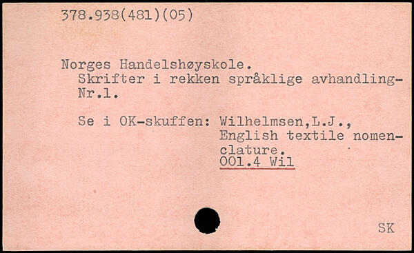 Norges Handelshoyskole. Skrifter i rekken sprâklige avhandling-Nr .1. Se i OK-skuffen: Wilhelmsen,L.J., English textile nomenclature. 001,4 Vil