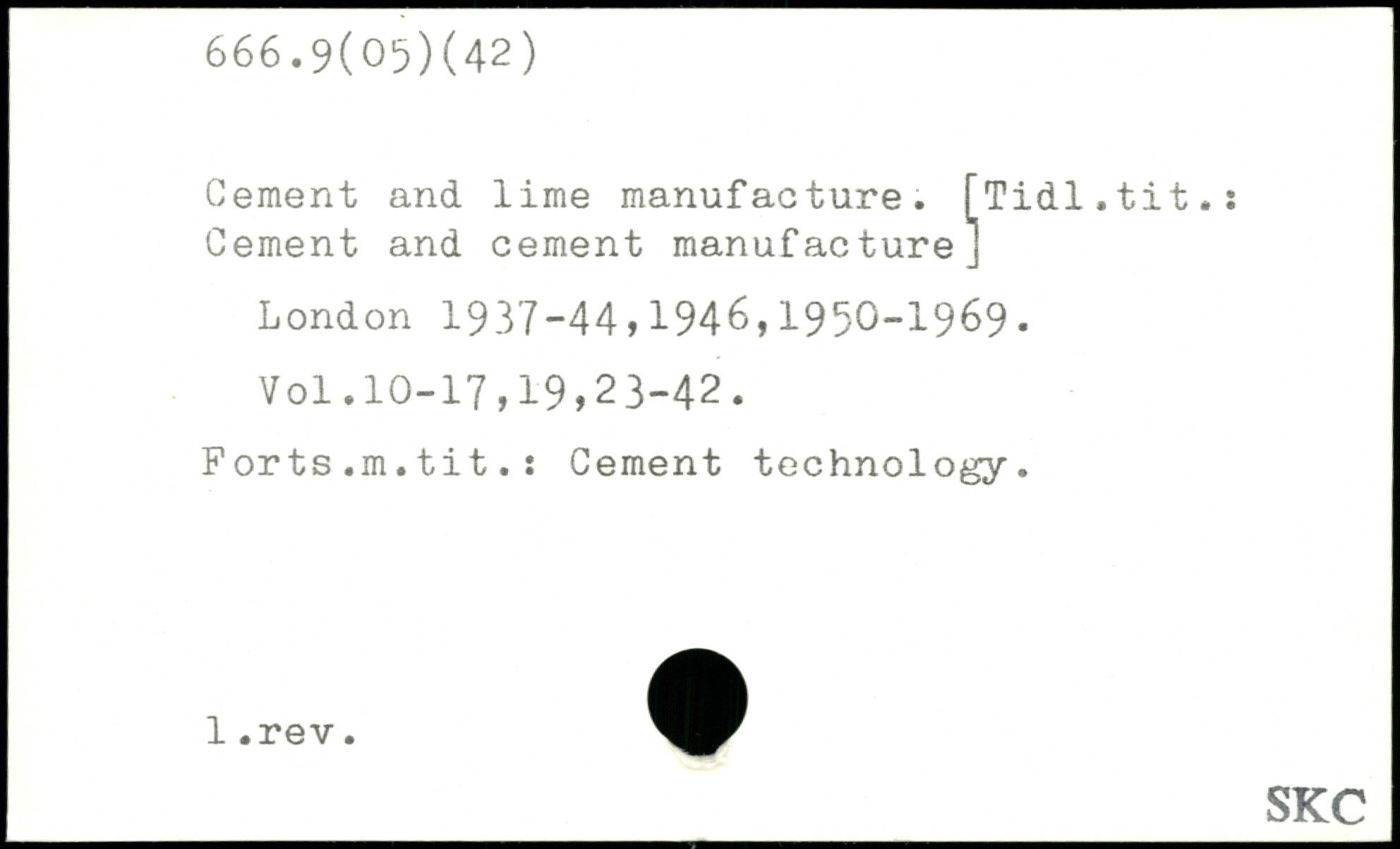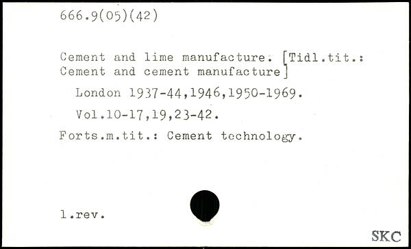 Cement and lime manufacture. [Tidl.tit.; Cement and cement manufacture!