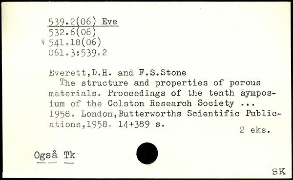 The structure and properties of porous materials. Proceedings of the tenth symposium of the Colston Research Society ... 1958