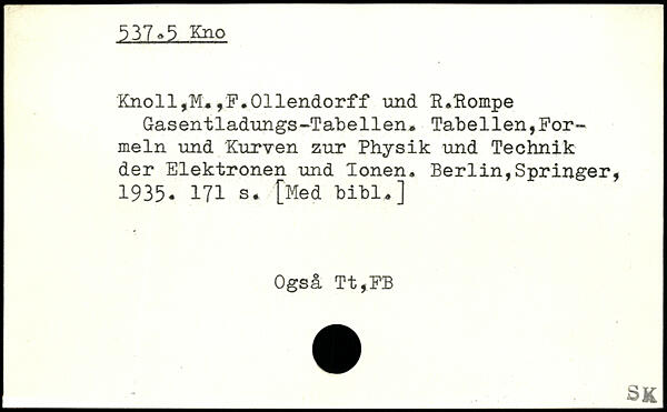 Gasentladungs-Tabellen, Tabellen,Formeln und Kurven zur Physik und Technik der Elektronen und Ionen.
