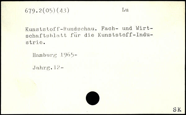 Kunststoff-Rundschau. Fach- und Wirtschaftsblatt für die Kunststoff-Indu-strie. Hamburg Jahrg.lH-