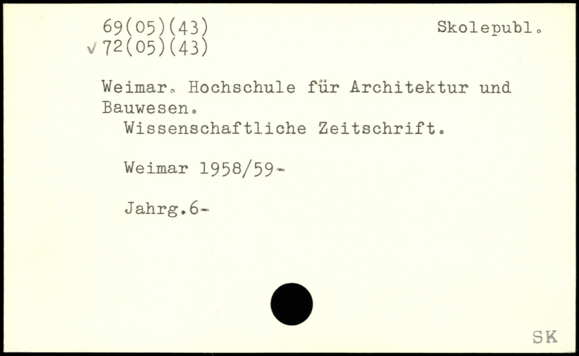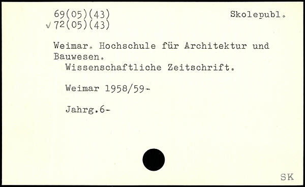 Weimar, Hochschule für Architektur und Bauwesen. Wissenschaftliche Zeitschrift. Weimar 1958/59~ Jahrg.6-