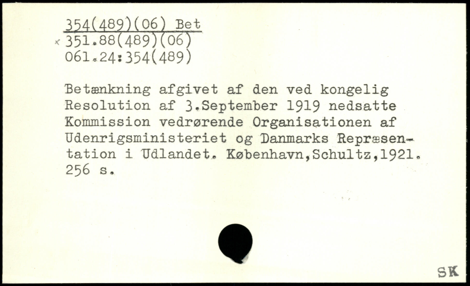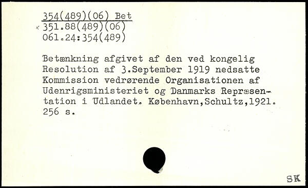 Betænkning afgivet af den ved kongelig Resolution af 3-September 1919 nedsatte Kommission vedrørende Organisationen af Udenrigsministeriet og Danmarks Repræsentation i Udlandet,