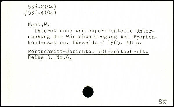 Theoretische und experimentelle Untersuchung der Wärmeübertragung bei Tropfenkondensat ion. Düsseldorf 1965