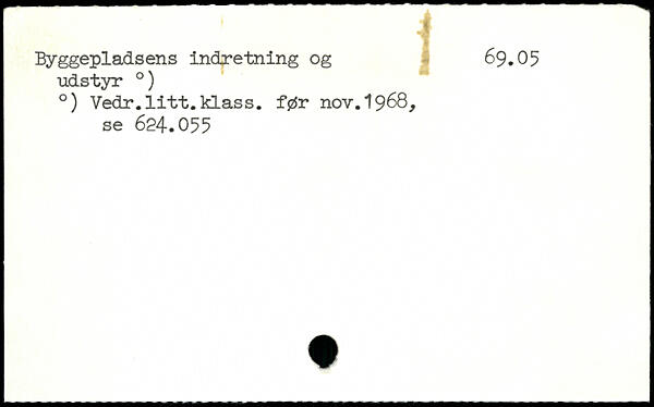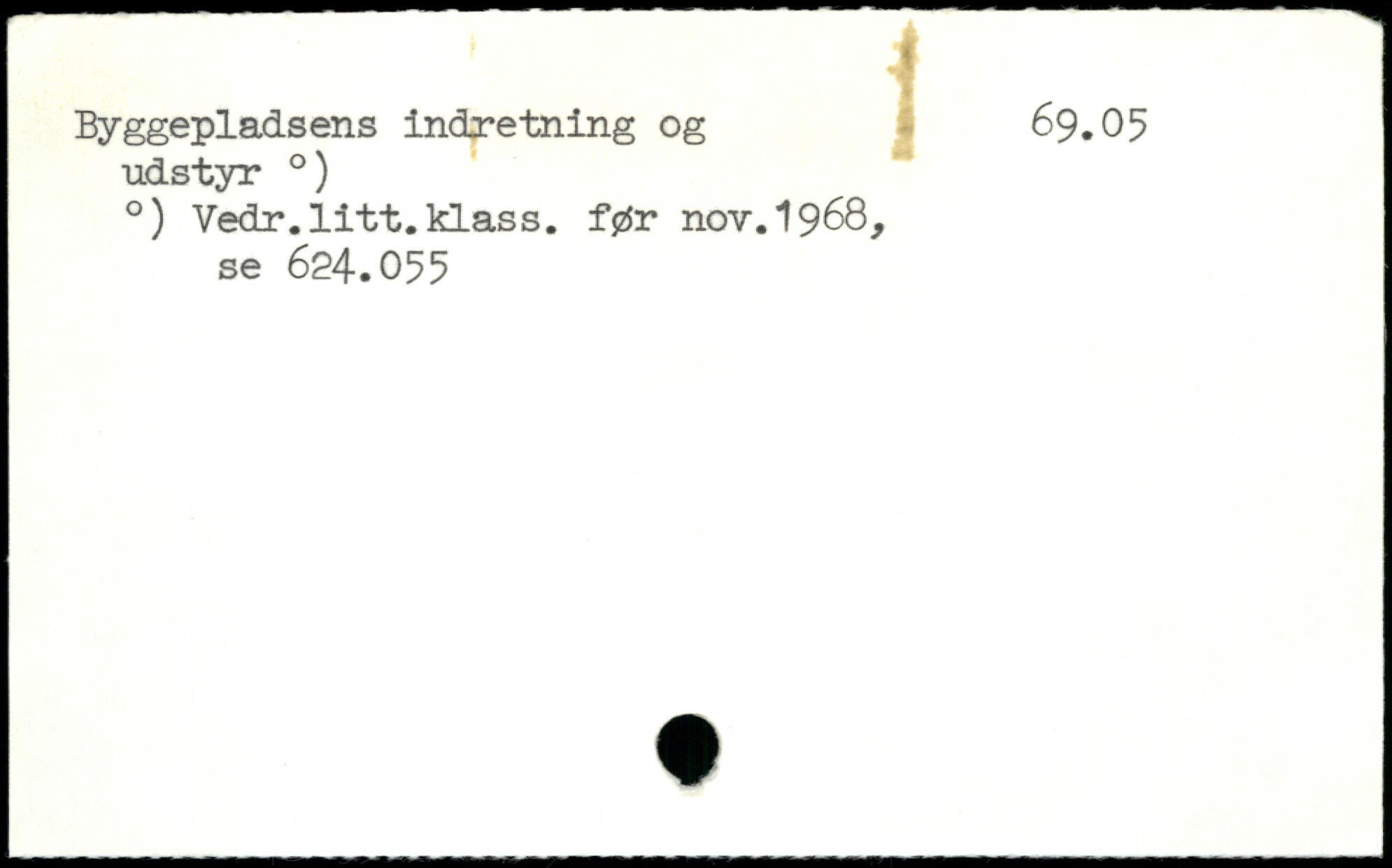 Byggepladsens Indretning og 69.05 udstyr 0) .) Vedr.litt.klass. før nov.1968, se 624.055