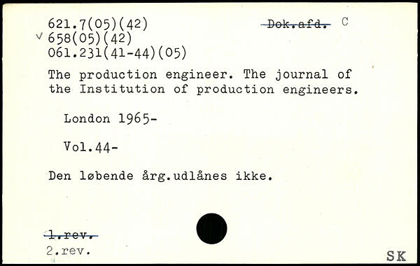The production engineer. The journal of the Institution of production engineers.