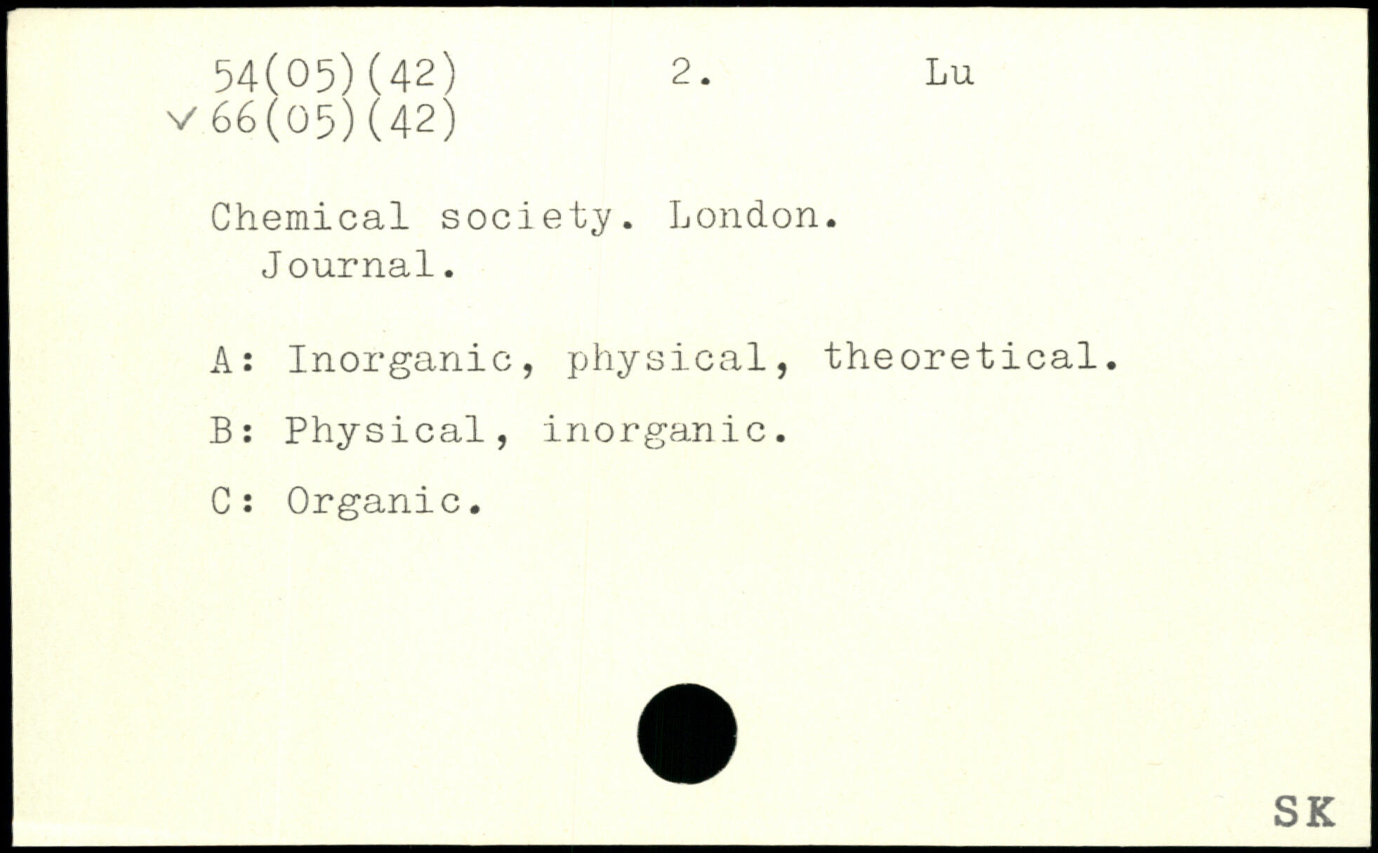 Chemical society. London. J ournal. A: Inorganic, physical, theoretical. B: Physical, inorganic. C: Organic.