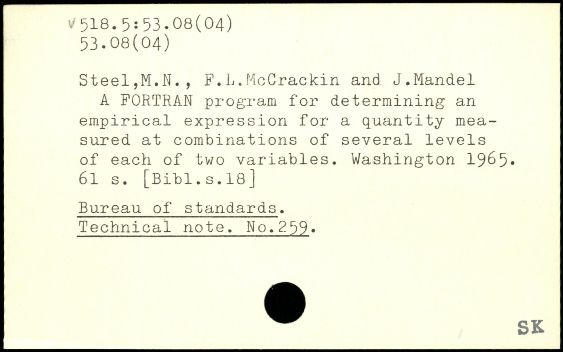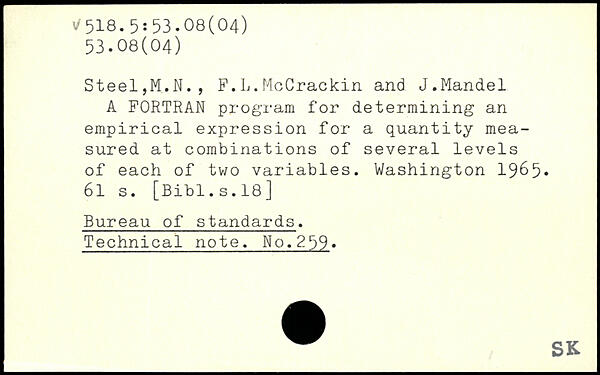 Steel,M.N., F.L.McCrackin and J.Mandel A FORTRAN program for determining an empirical expression for a quantity measured at combinations of several levels of each of two variables. Washington 19^5.
