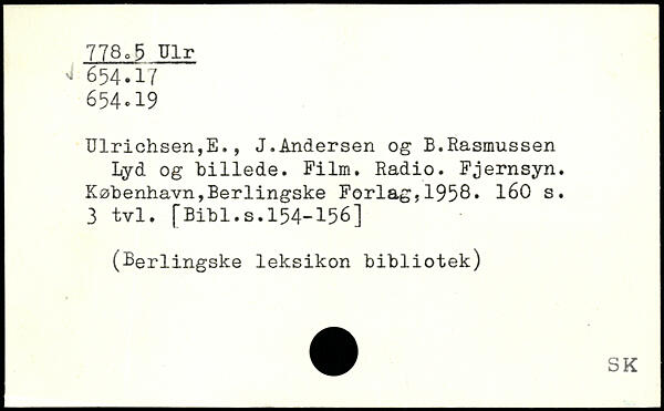 Ulrichsen,E., J.Andersen og B.Rasmussen Lyd og Billede. Film. Radio. Fjernsyn.