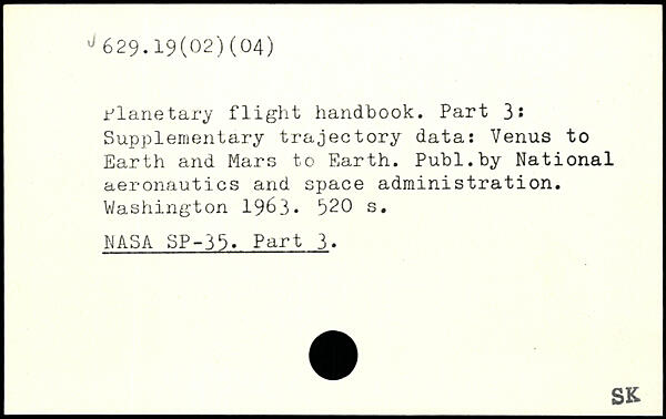 Planetary flight handbook. Part 3. Supplementary trajectory data: Venus to Earth and Mars to Earth.