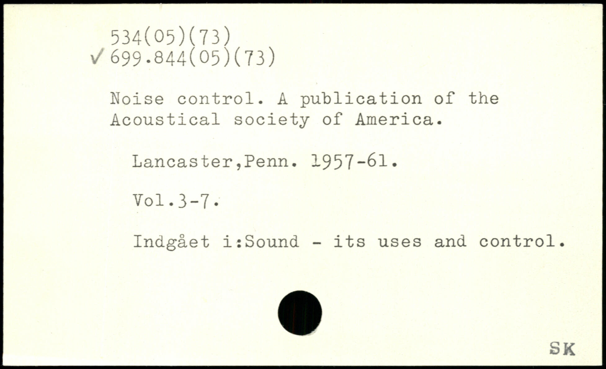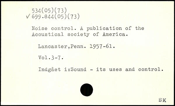Noise control. A publication of the Acoustical society of America. Lancaster,Penn. 1957-61.