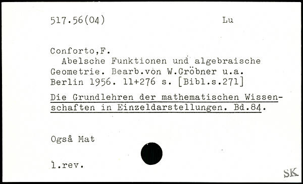 Abelsche Funktionen und algebraische Geometrie. Bearb.von W.Gröbner u.a.