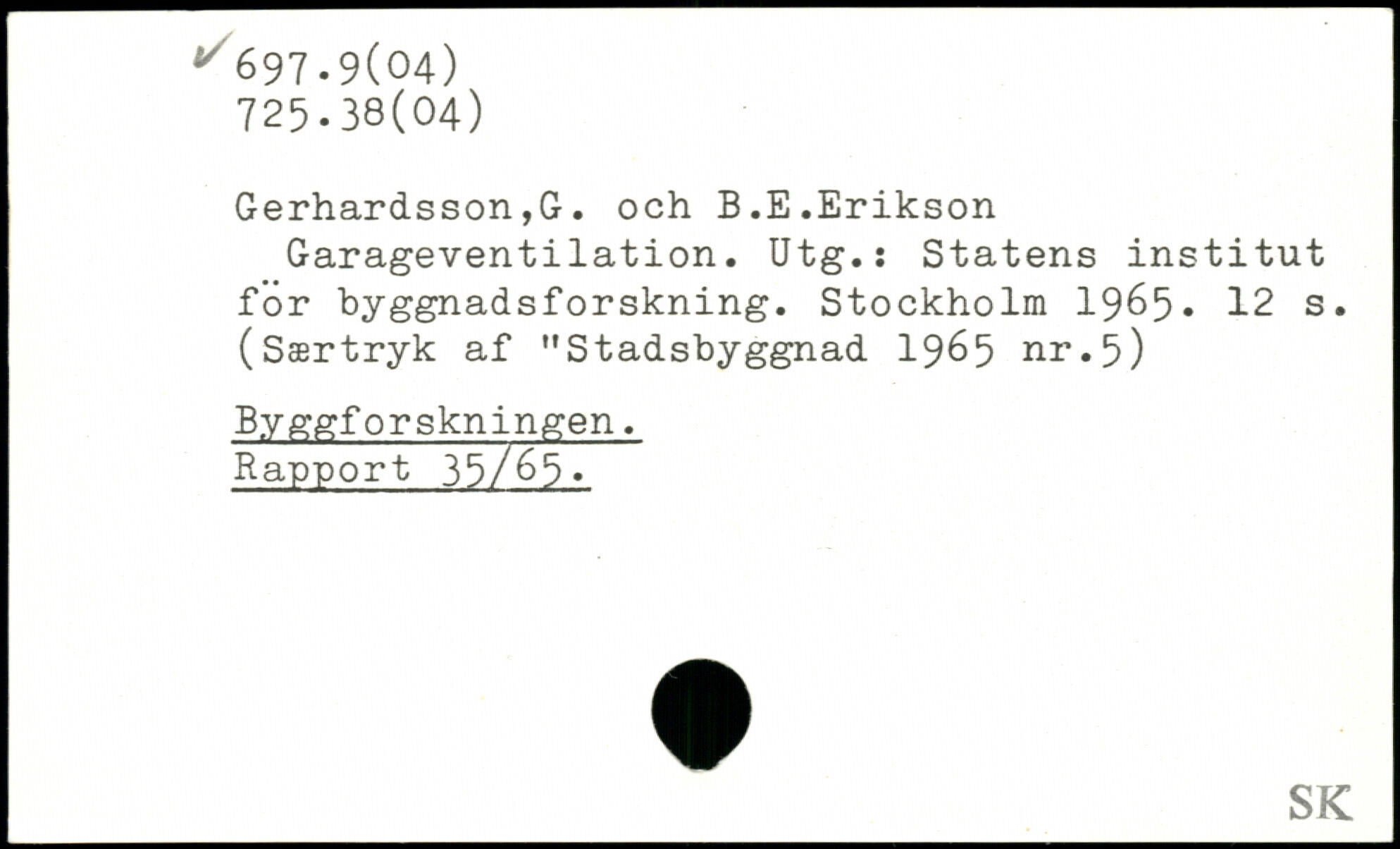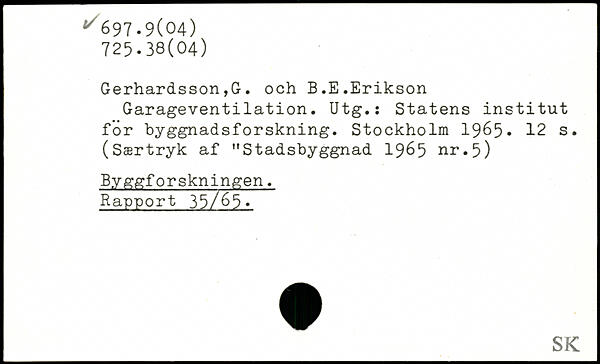 Garageventilation. Utg.j Statens institut för byggnadsforskning.