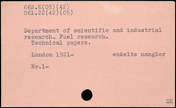 Department of scientific and industrial research. Fuel research. Technical papers.