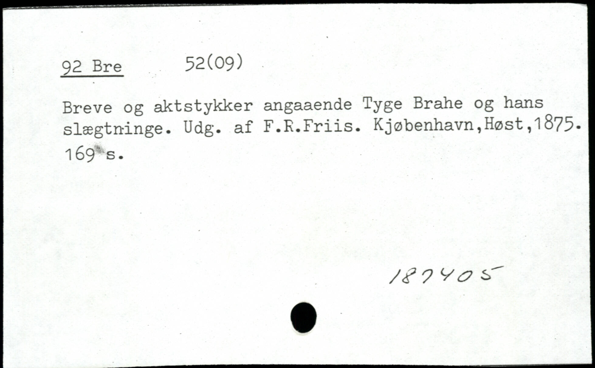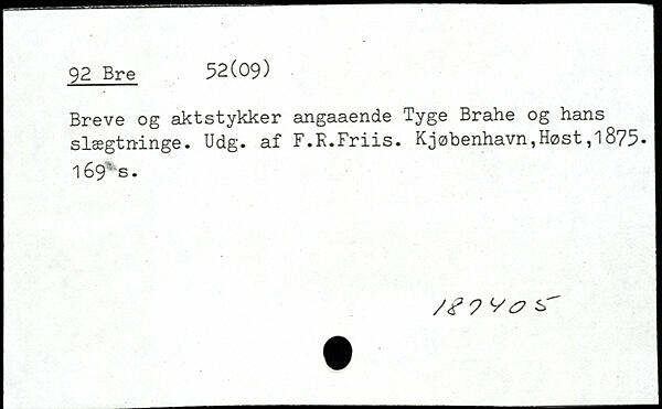 Breve og aktstykker angaaende Tyge Brahe og hans slægtninge. Udg. af F.K.Friis.