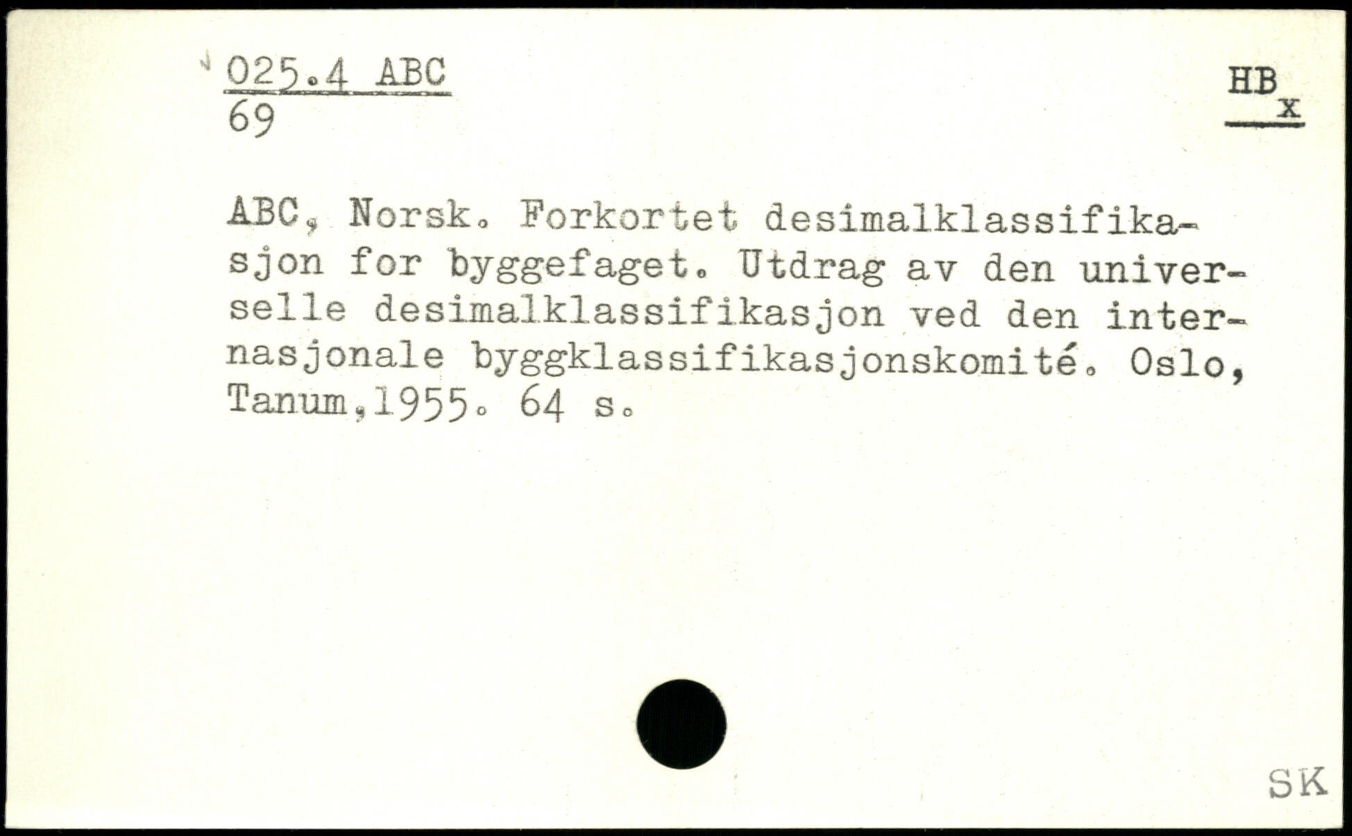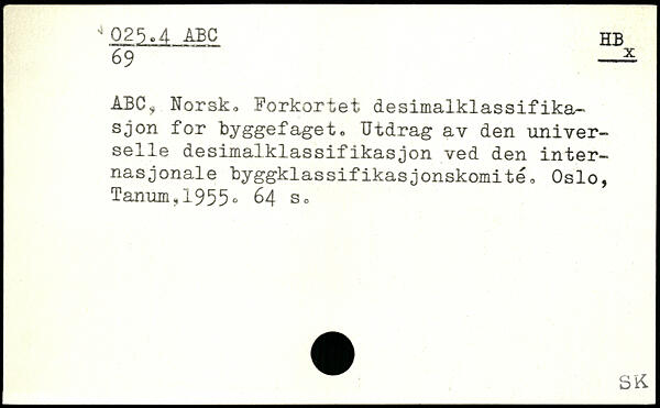 ABC, Norsko Forkortet desimalklassifika-sjon for byggefaget. Utdrag av den universelle desimalklassifikasjon ved den internas jonale byggklassifikasjonskomité.