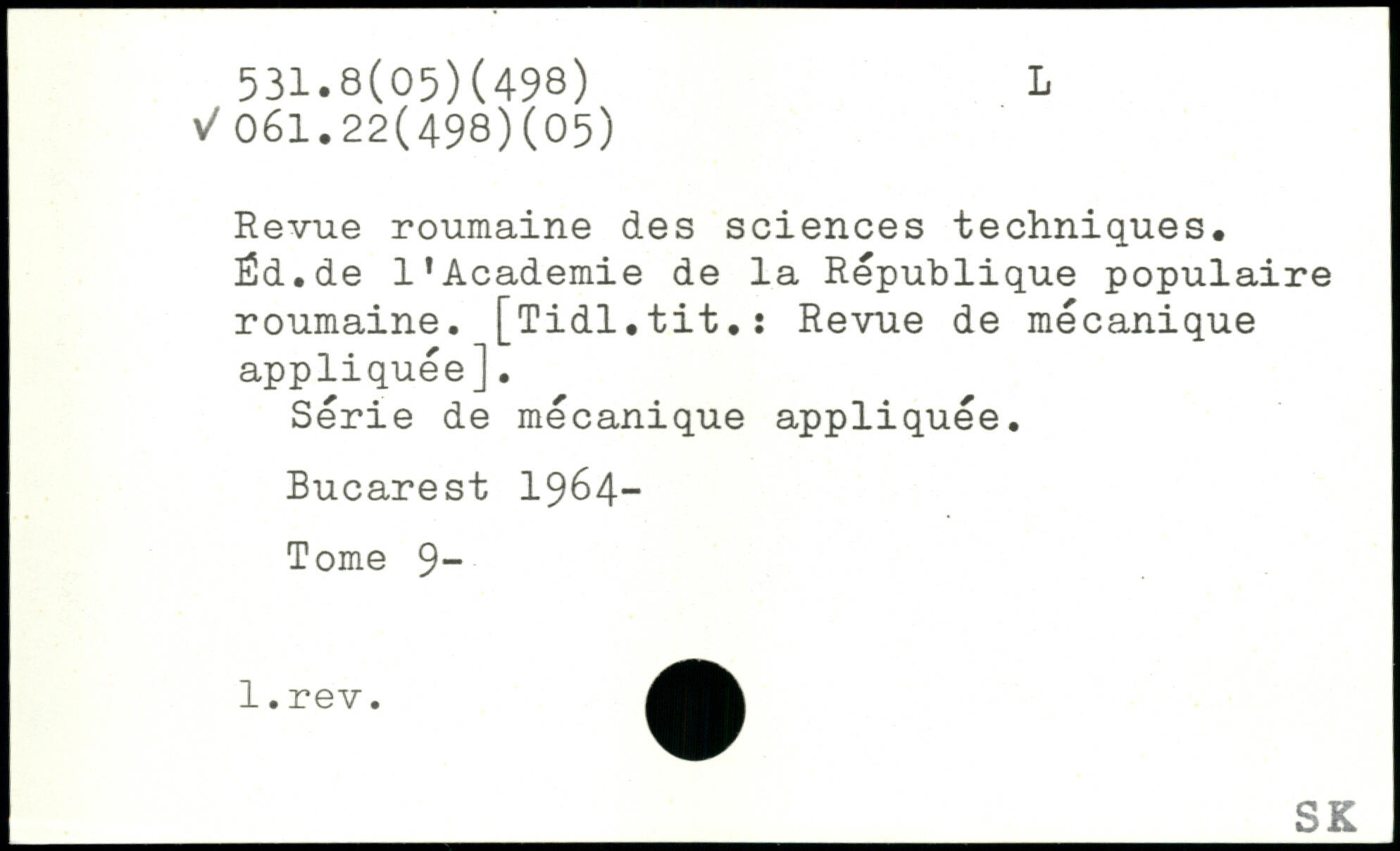 Revue roumaine des sciences techniques. Éd.de l’Academie de la République populaire roumaine. [Tidl.tit.î Revue de mécanique appliquée]. Série de mécanique appliquée.