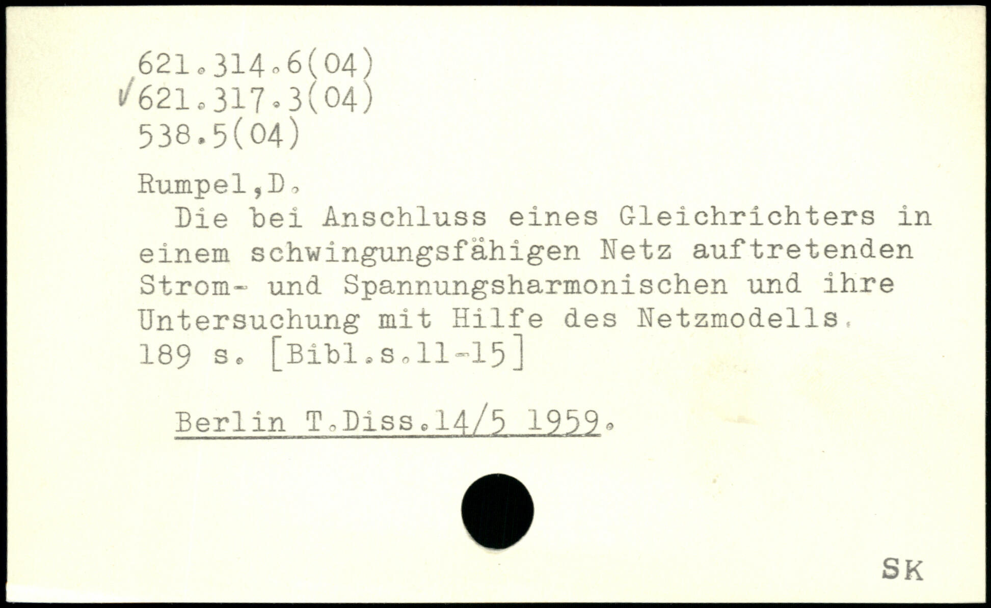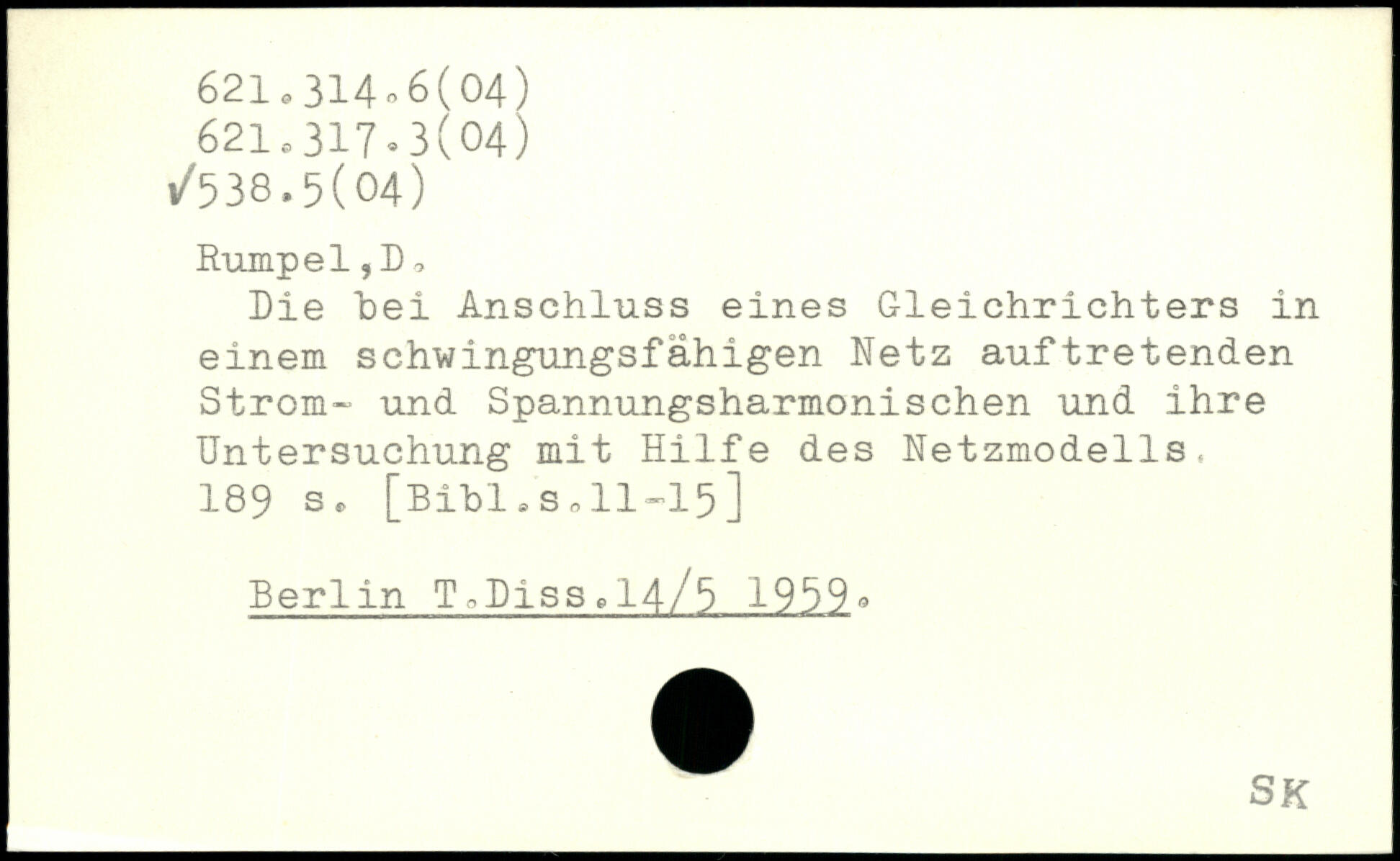 Die bei Anschluss eines Gleichrichters in einem schwingungsfähigen Netz auftretenden Strem- und Spannungsharmonischen und ihre Untersuchung mit Hilfe des Netzmodells