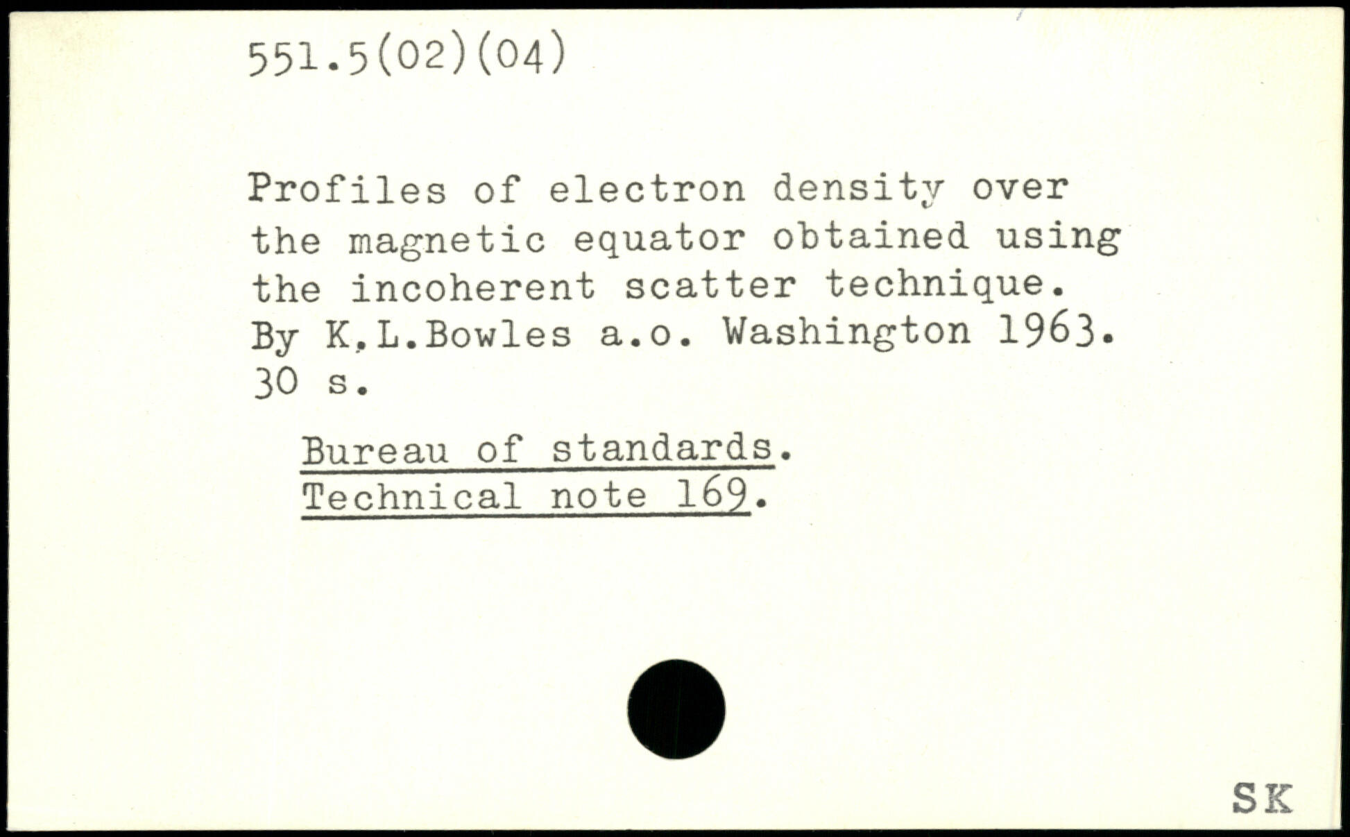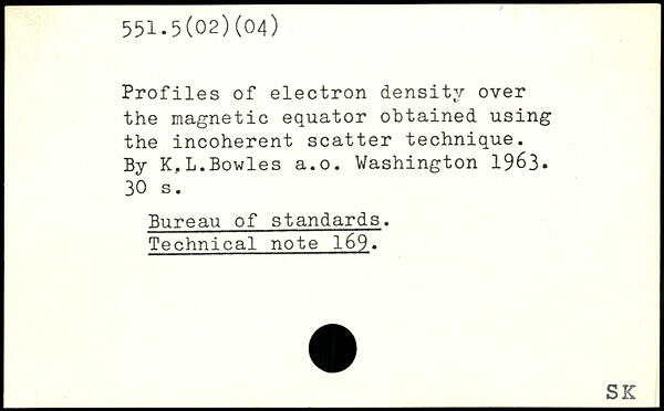 Profiles of electron density over the magnetic equator obtained using the incoherent scatter technique. By K,L.Bowles a.o.