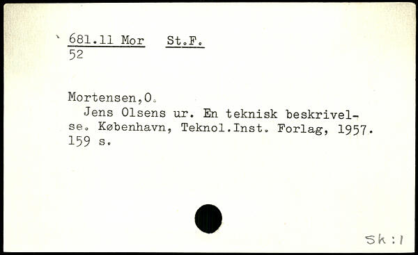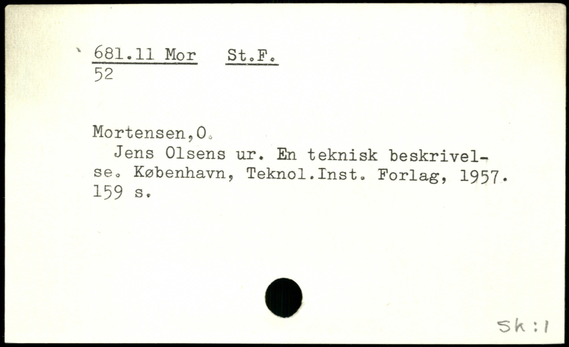 Jens Olsens ur. En teknisk beskrivelse., København, Teknol.Inst. Forlag, 1957.