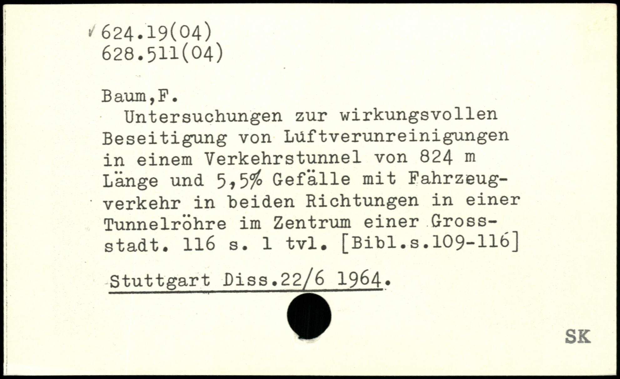 Untersuchungen zur wirkungsvollen Beseitigung von Lüftverunreinigungen in einem Verkehrstunnel von 824 m Länge und 5,5$ Gefälle mit Fahrzeugverkehr in beiden Richtungen in einer Tunnelrohre im Zentrum einer Grossstadt.