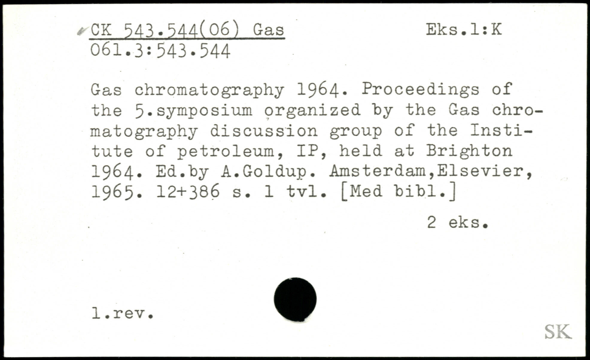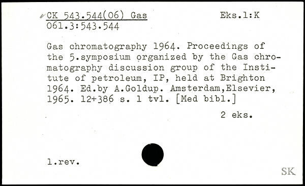 Gas chromatography 1964. Proceedings of the 5,symposium organized by the Gas chromatography discussion group of the Institute of petroleum, IP, held at Brighton 1964. Ed.by A.Goldup.