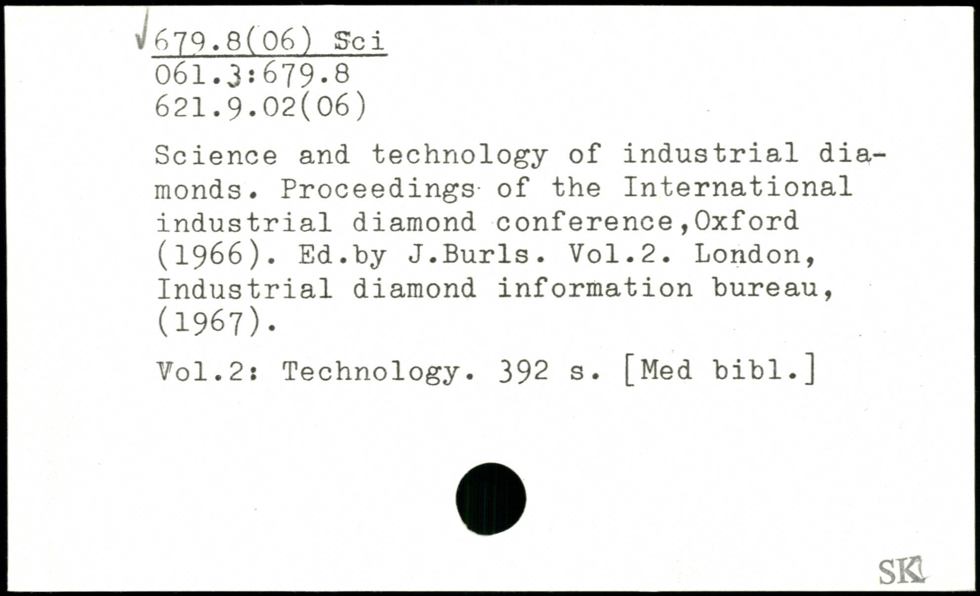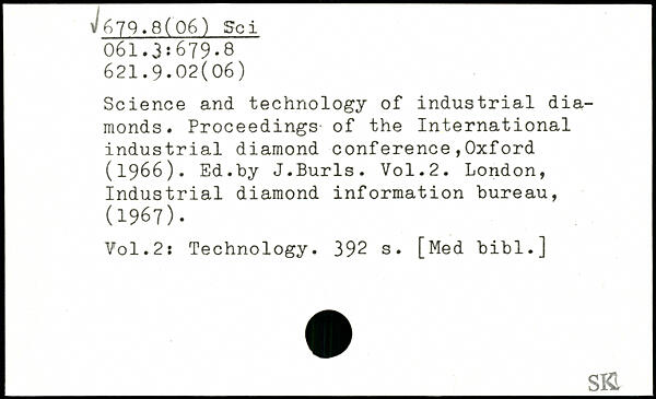 Science and technology of industrial diamonds. Proceedings- of the International industrial diamond conference,Oxford (1966). Ed.by J.Burls.