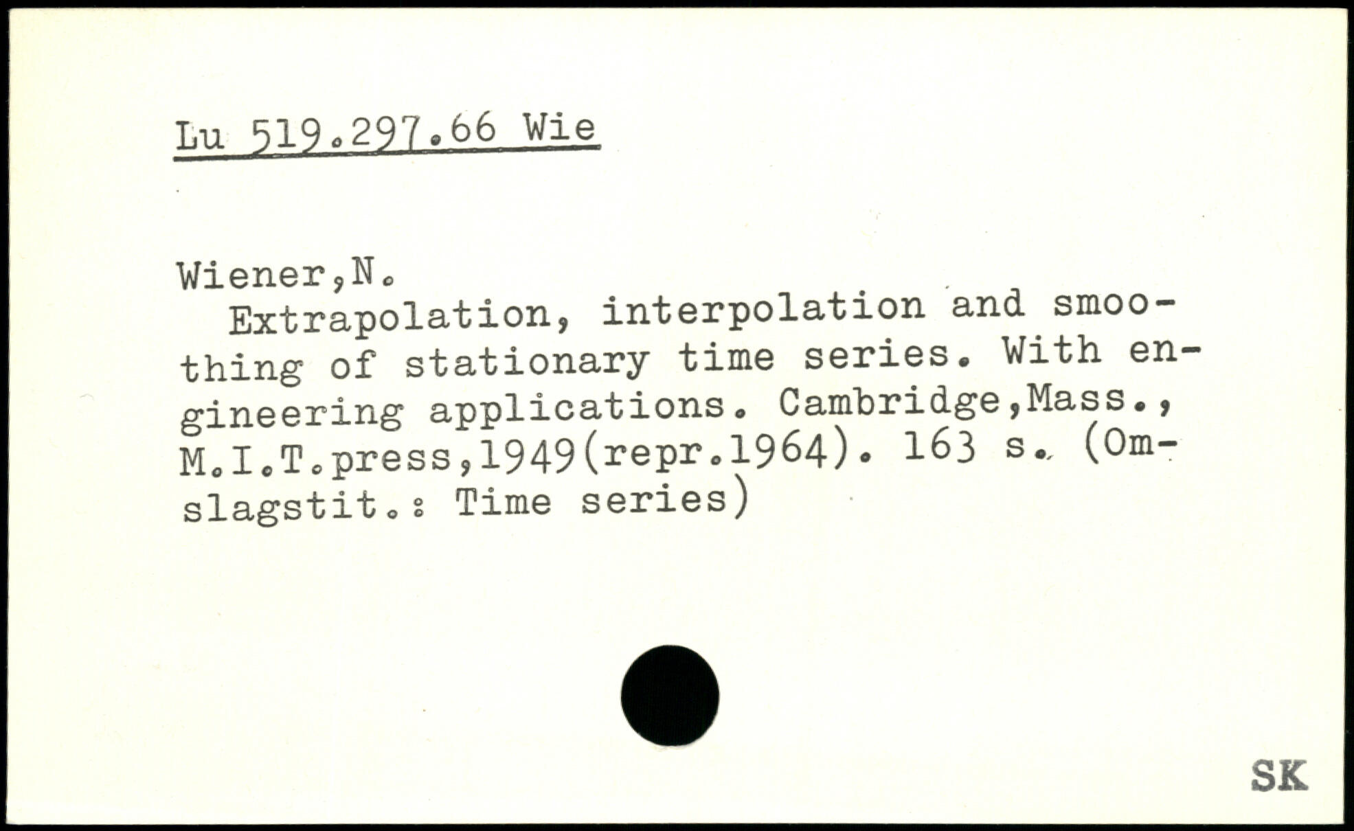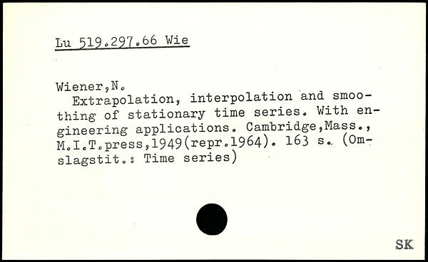 Extrapolation, interpolation and smoothing of stationary time series. With engineering applications. Cambridge,Mass., Me I .To press, 1949 (repr,1964). l
