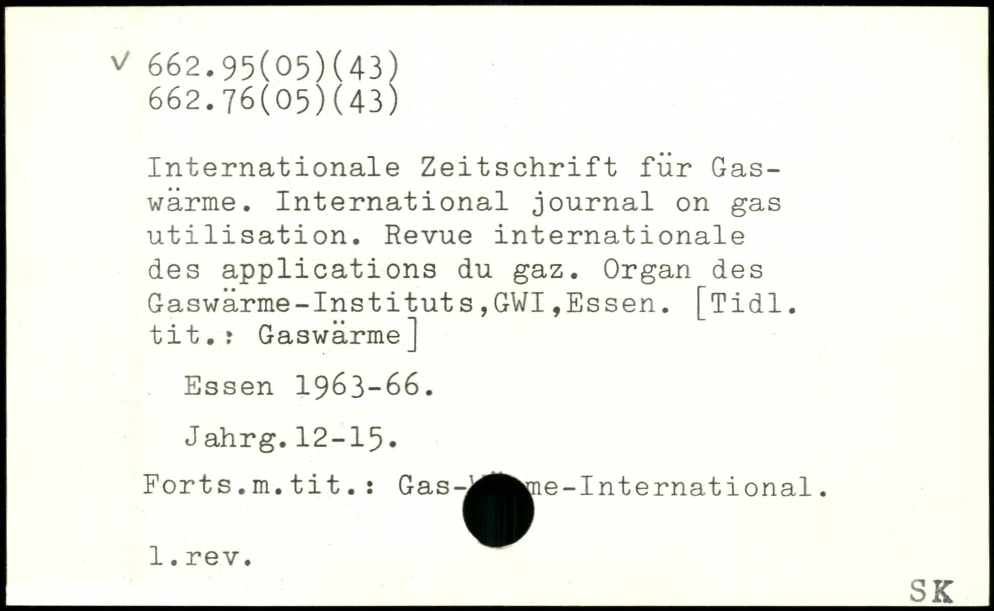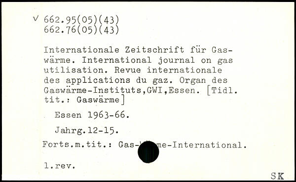 Internationale Zeitschrift für Gaswärme. International journal on gas utilisation. Revue internationale des applications du gaz. Organ des Gaswärme-Instituts,GWI,Essen. [Tidl. tit.r Gaswärme]