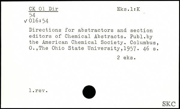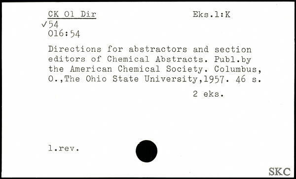 Directions for abstractors and section editors of Chemical Abstracts.
