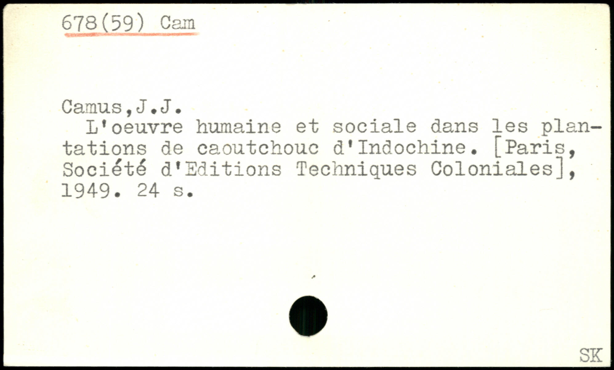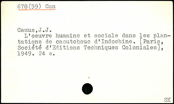 L'oeuvre humaine et sociale dans les plantations de caoutchouc d'Indochine. [Paris, Société d'Sditions Techniques Coloniales], 1949.