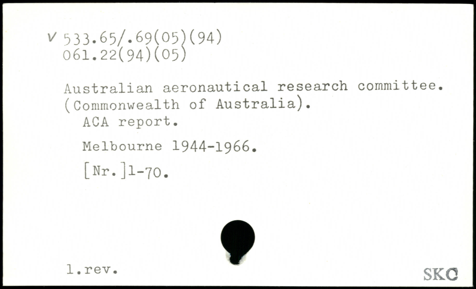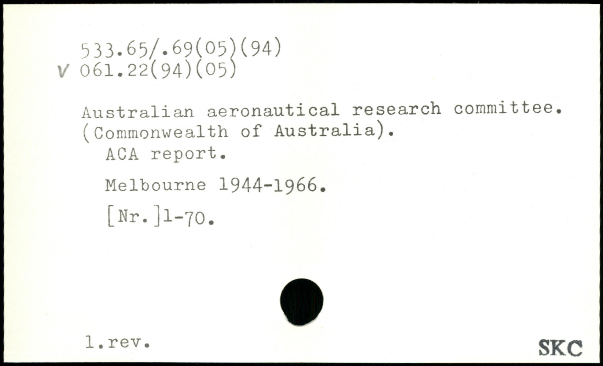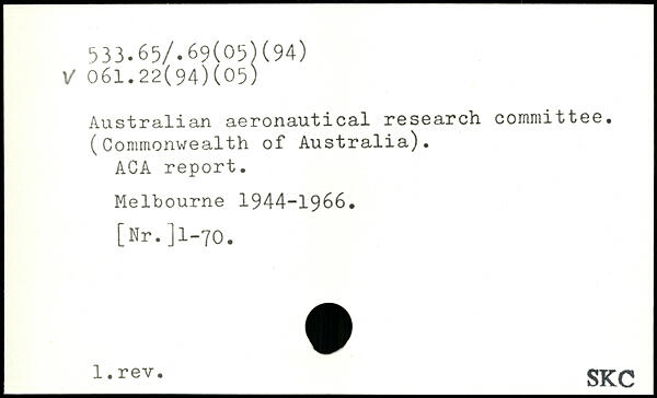 Australian aeronautical research committee. (Commonwealth of Australia). ACA report. Melbourne 1944-1966. [Nr.Jl-70.