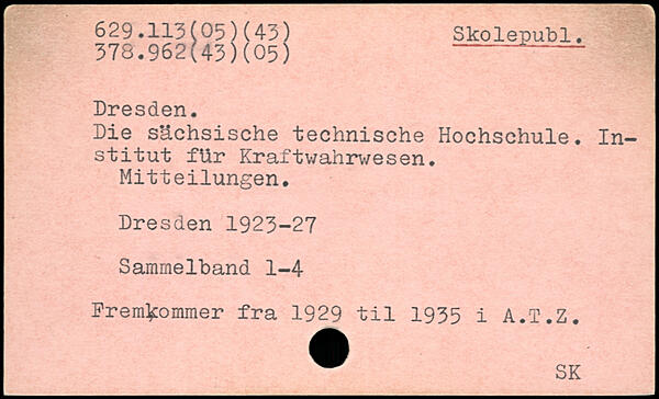 Die sächsische technische Hochschule. Institut für Kraftwahrwesen. Mitteilungen. Dresden 1923-