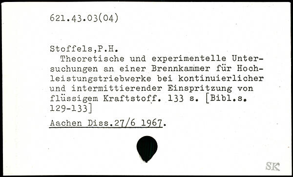 Theoretische und experimentelle Untersuchungen an einer Brennkammer für Hochleistungstriebwerke bei kontinuierlicher und intermittierender Einspritzung von flüssigem Kraftstoff.