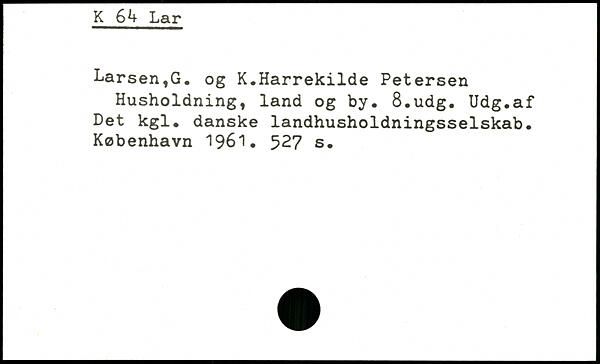 Larsen,G. og K.Harrekilde Petersen Husholdning, land og by.
