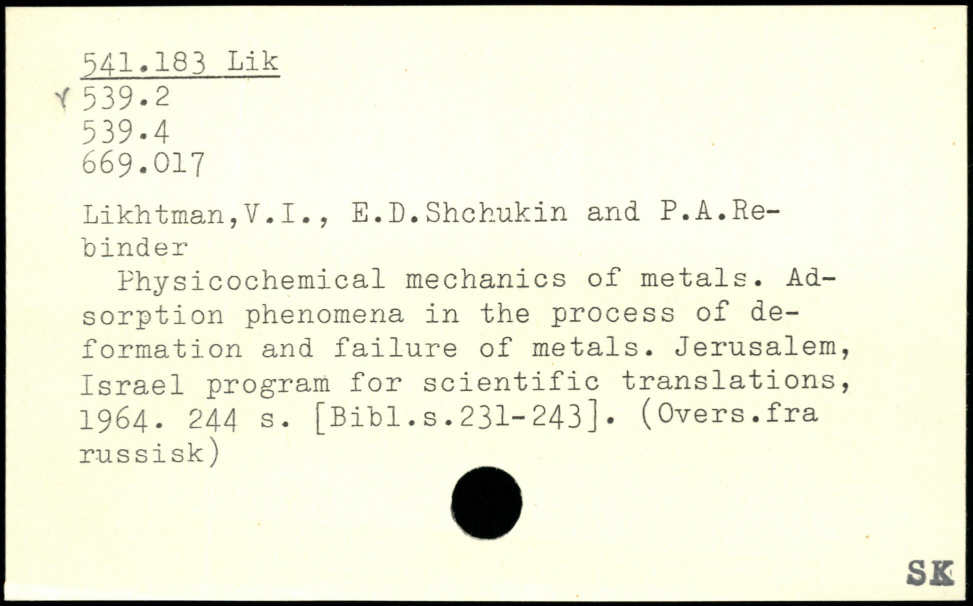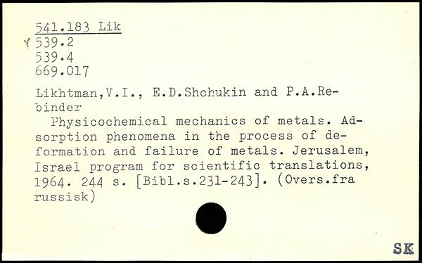 Forfatter: V.I. Likhtman, E.L. Shchukin, P.A. Rebinder