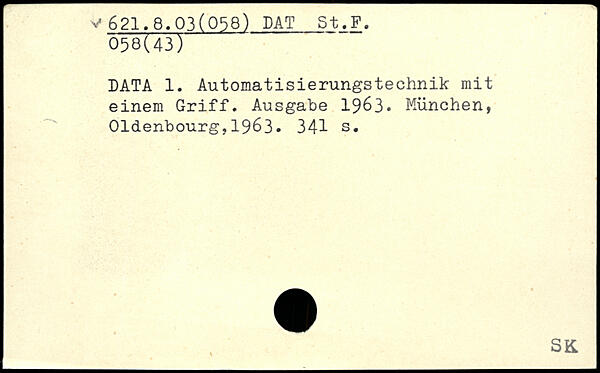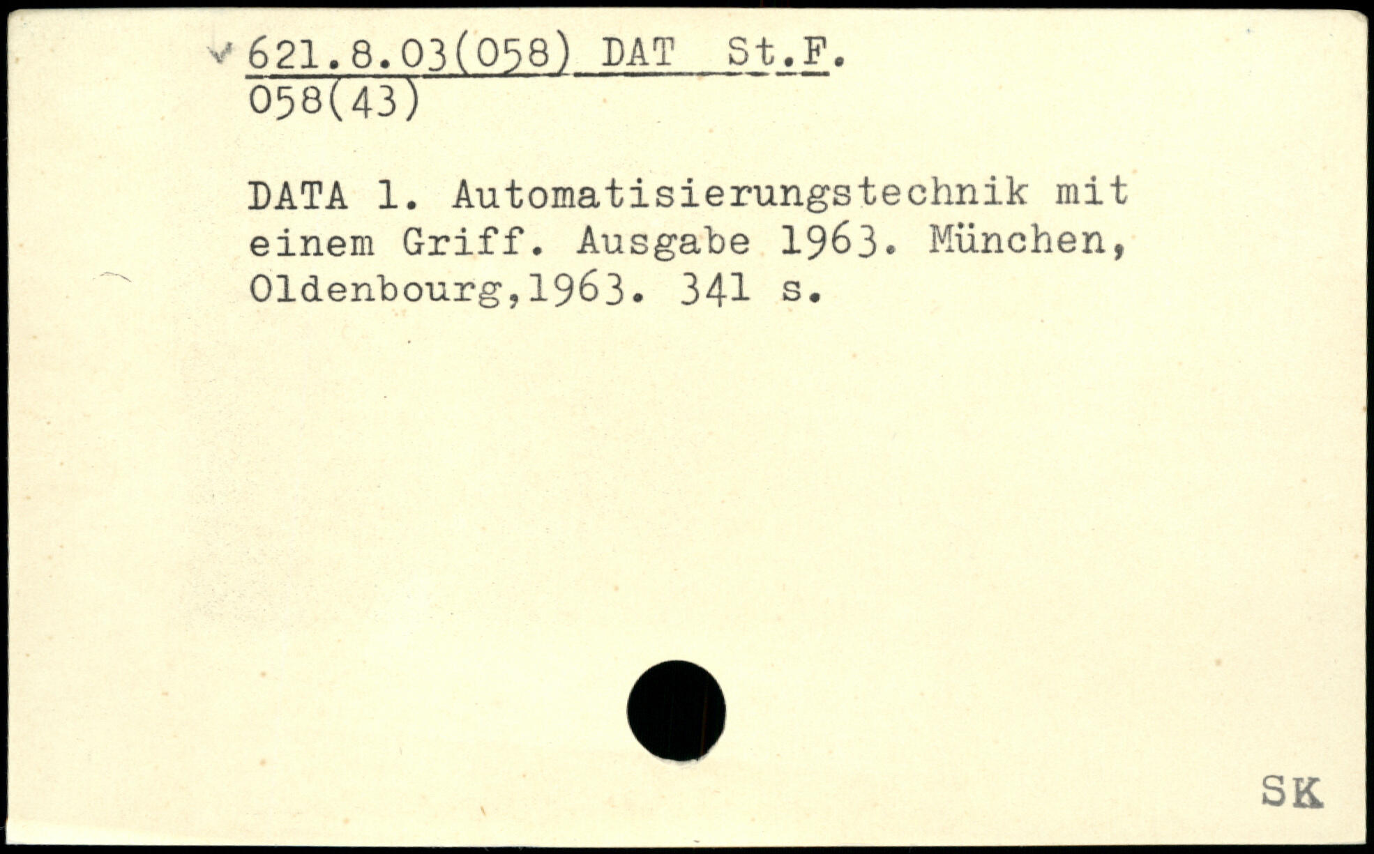 DATA 1. Automatisierungstechnik mit einem Griff. Ausgabe 1963.